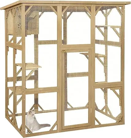 Transform your cat's outdoor experience with the Wooden Catio Outdoor Cat Enclosure by NoEnName, designed to provide a safe and stylish haven for your feline friend.